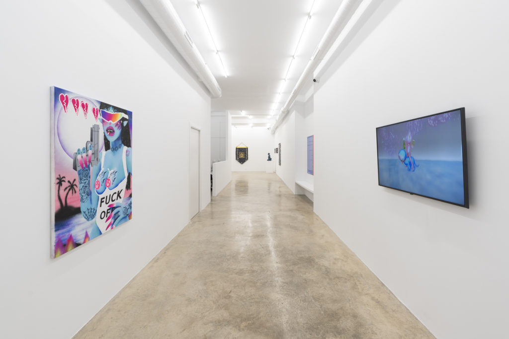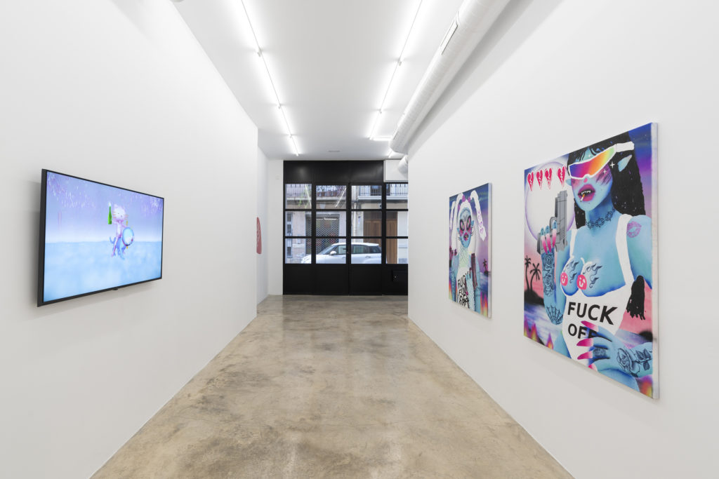 This exhibition harnesses their punk attitude that continues to be relevant in our times, while updating the discourse by addressing the persistent inequalities within white Euro-centric feminism. The works of Anna Ehrenstein, Bel Fullana, Claudia Maté, and Qualeasha Wood adapt the themes of feminist resistance to the changing social and technological landscape of today. Connected through an aesthetic that is loud, unforgiving, bold, synthetic, colourful, and brave – they weave intricate visual battles aiming for a more equal future. These works contain energy, positivity, radical proposals, a desire for a better world, and an ultimate aim to denounce the persisting patriarchal, colonial and racist system through radical liberation.
