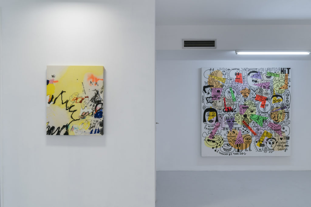 As if the paintings were the guests, these pieces from six artists of different nationalities are reunited to celebrate everything and nothing at the same time. They try to ease this actual situation using naïve strokes, imperfect shapes, bright colors and themes that may result in the absurd. Each guest adds their own personality: