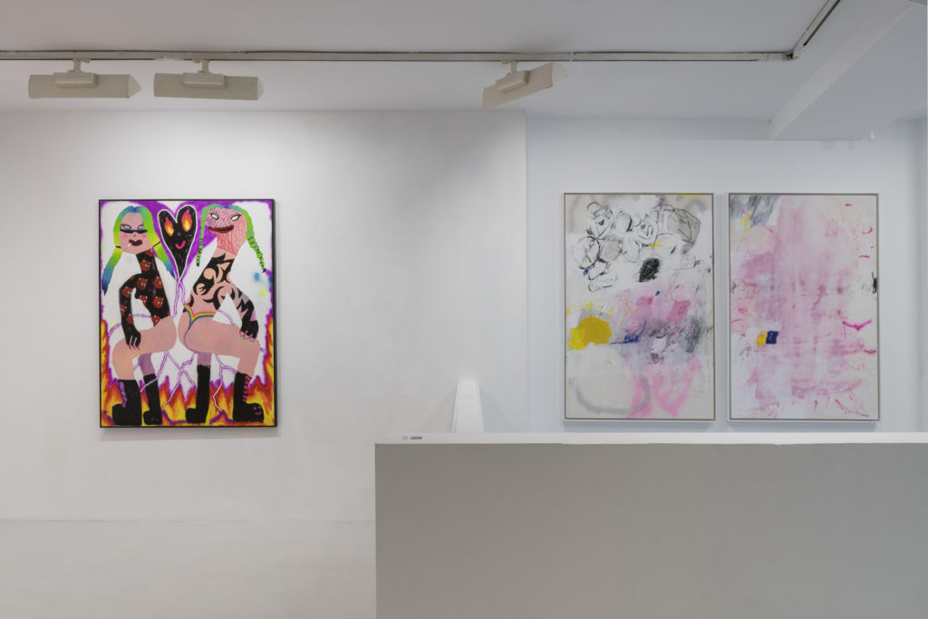 Bel Fullana (Majorca, 1985) pushes the envelope of 21st century aesthetics: trap, reggaeton, “posing” on social media. She represents girls with fishnet stockings, bikinis, tattoos and fire. These characters are erotically posing in front of a camera as if it is the artist’s stroke. They are portrayed sarcastically flaunting today’s stereotypes.