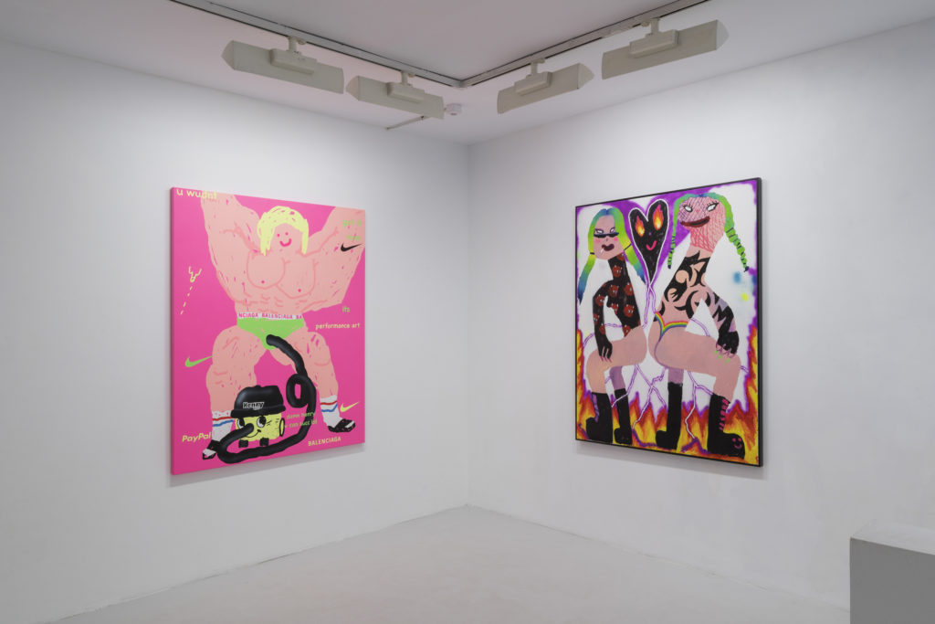 Philip Gerald (Ireland, 1992) claims that which is useless and just playful through plain-fluorescents colors, excessive pithy faces and ambiguous figures created from an inchoate image editing program. His work creates a visual dilemma where the digital world is relocated older mechanisms. Carefree scenes, daring characters and bright colors are all part of his style.