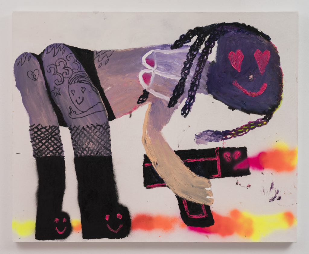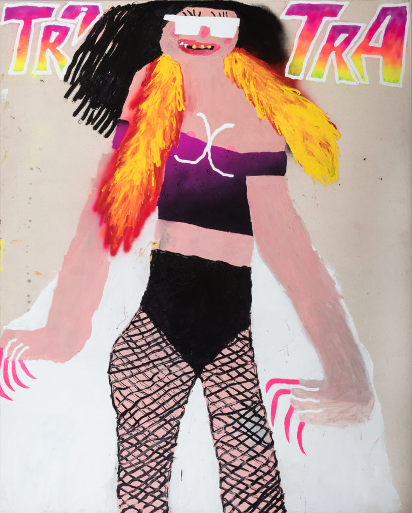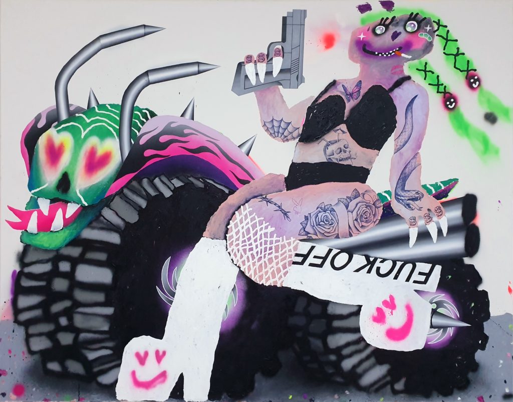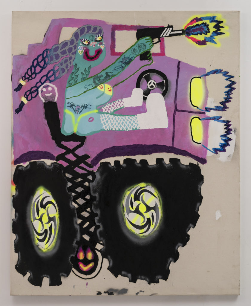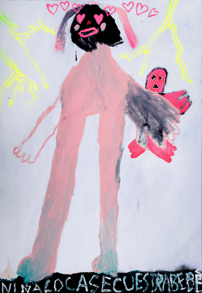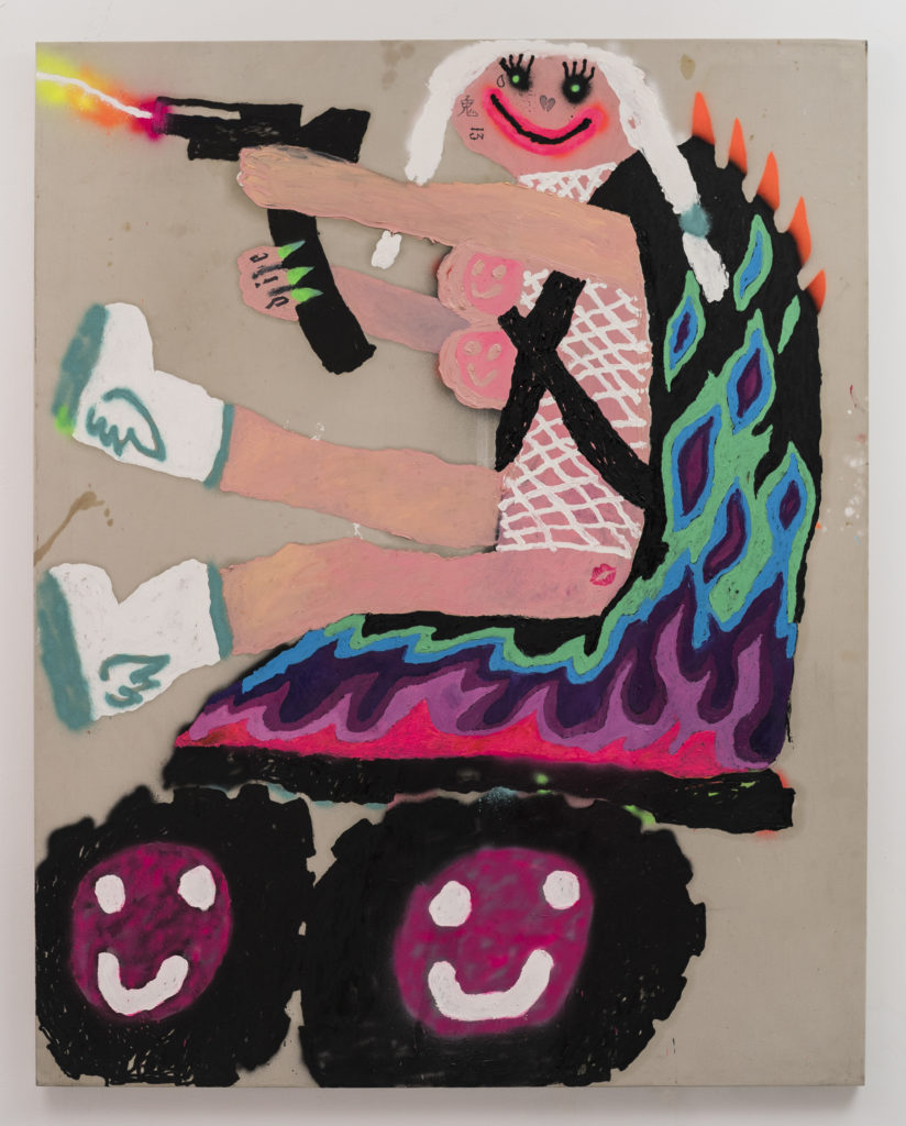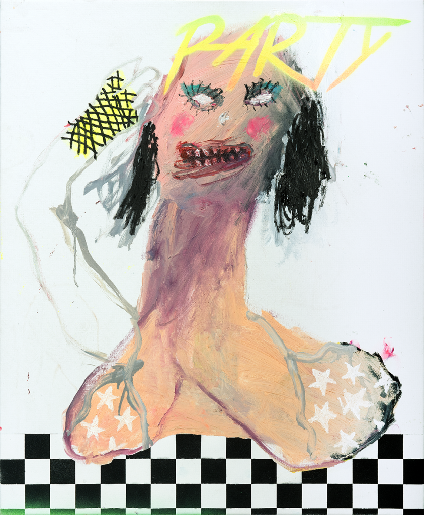 Oil, acrylic, charcoal, marker pen and spray on canvas