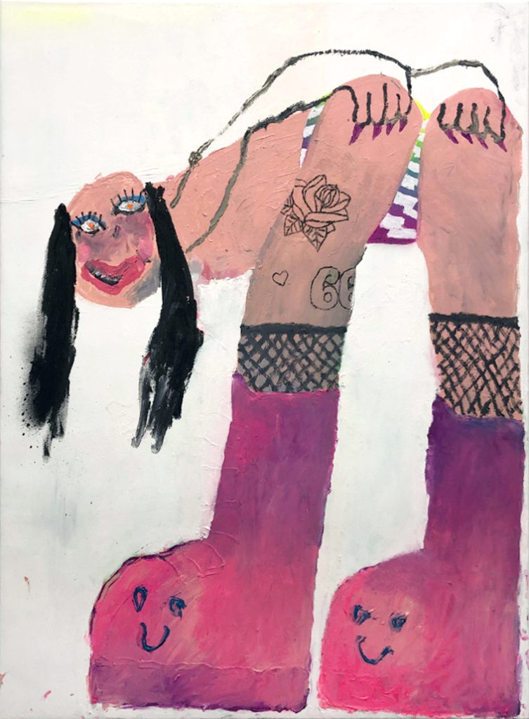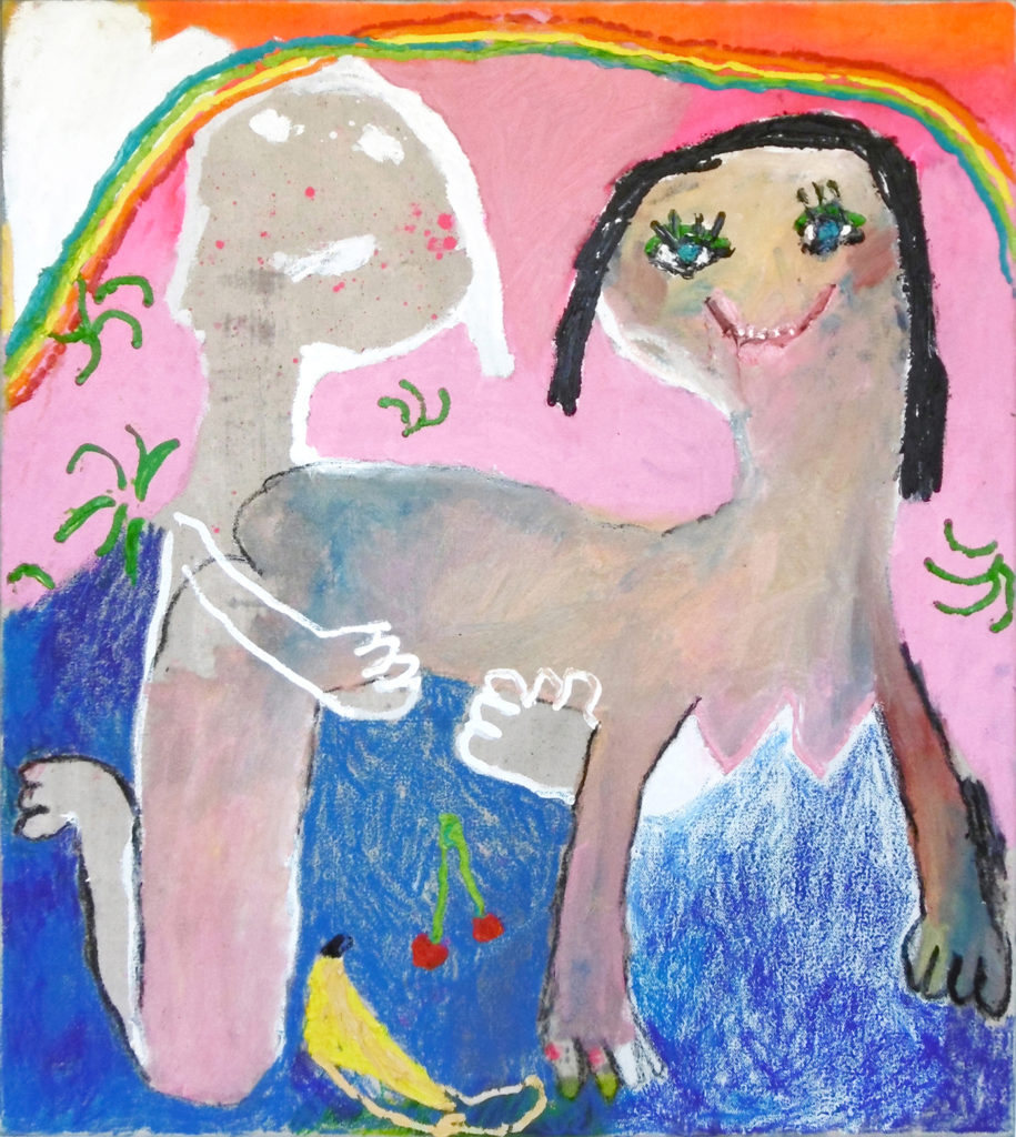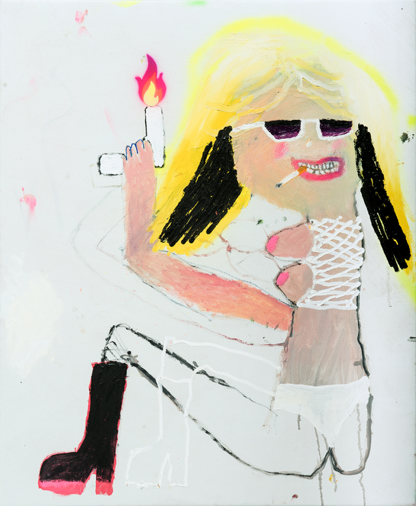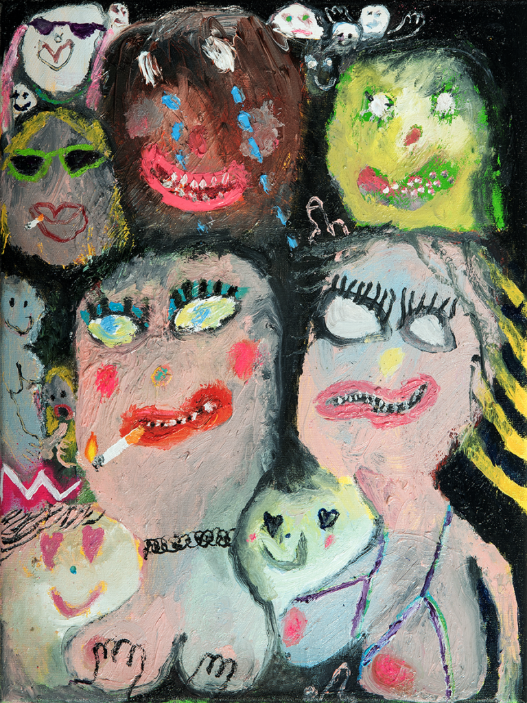 Oil, acrylic, charcoal and wax crayons on canvas 81 x 71 cm, 2018
