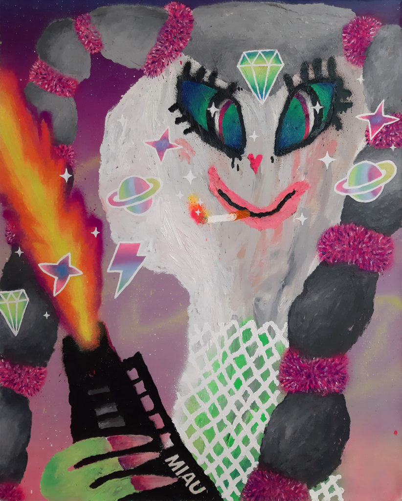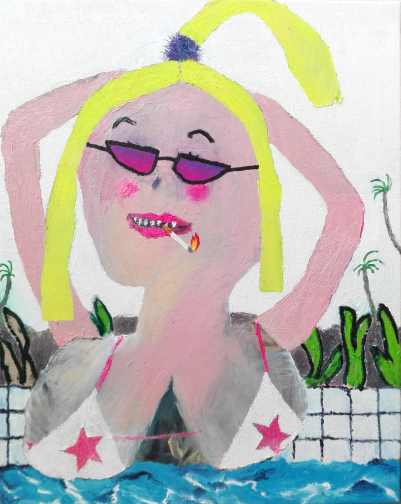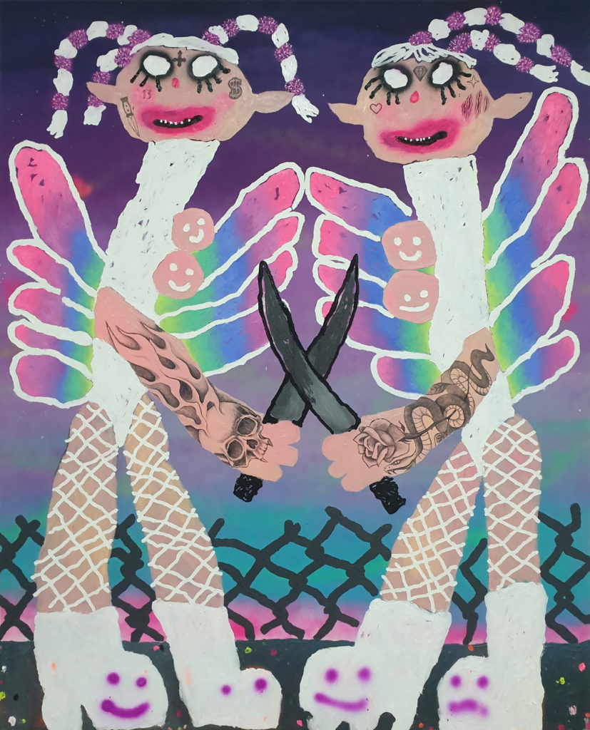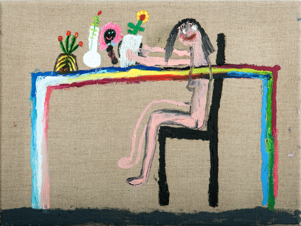 Oil, acrylic, charcoal and wax crayons on canvas 81 x 71 cm, 2018